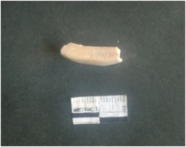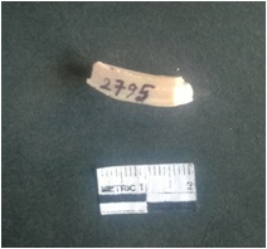 | Description / विवरण | The shell circlet fragment has angular edges and incomplete finish. The pieces pale white in color, and has rectangular cross section. The outer faces are rough while the inside edge has natural polish. |