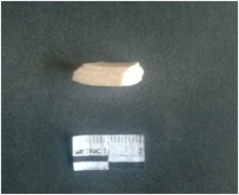 | Description / विवरण | The shell circlet fragment has angular edges and incomplete finish. The pieces pale white in color, and has rectangular cross section. The outer faces are rough while the inside edge has natural polish. |