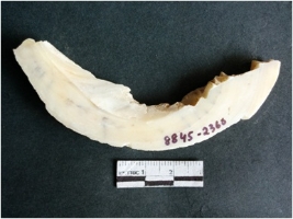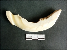 | Description / विवरण | This is a fragment of an unfinished shell circlet. It is an unfinished bangle fragment. It is white in color with polished inner surface and grounded outer surface. Rectangular in cross section. |