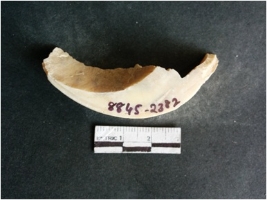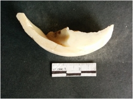 | Description / विवरण | This is a fragment of an unfinished shell circlet. It is an unfinished bangle fragment. It is white in color with polished inner surface and grounded outer surface. Rectangular in cross section. |