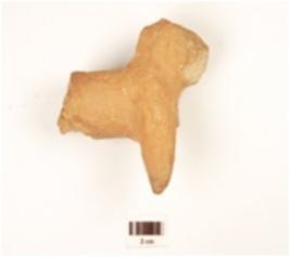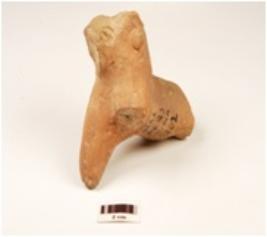 | Description / विवरण | A hand made terracotta animal figurine has only right side fore leg, surface is uneven and weathered, left ear is partially visible, nose and mouth are broken. |