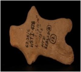 | Description / विवरण | Terracotta crude human figurine, standing. Pinched work on nose. Arms are conical and partly broken. |