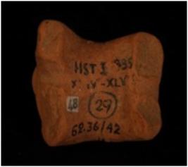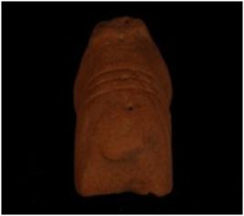 | Description / विवरण | Terracotta fragment of an animal figure decorated with three parallel incised lines on hind portion and two lines crosswise, three pierce on hind portion. |
