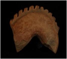 | Description / विवरण | Head of a horse, exaggerated neck with manes having prominent indentation design. It has applique circular eyes. |