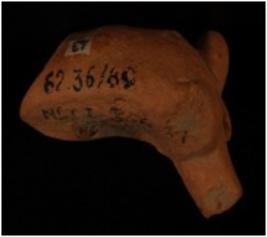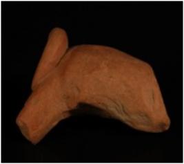 | Description / विवरण | Terracotta fragment of an animal figurine having an applied tail which is twised. One hind broken leg. |