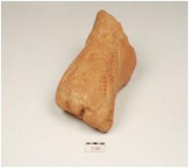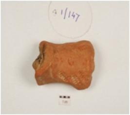 | Description / विवरण | A handmade animal figurine made on terracotta with head, four legs and tail broken, floral and geometric motifs on back, surface treated with red slip and well baked. |