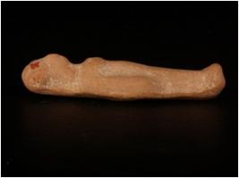 | Description / विवरण | Terracotta standing female figurine with both legs joined together, wash treatment given in buff colour on surface and standing posture. |