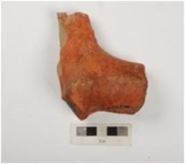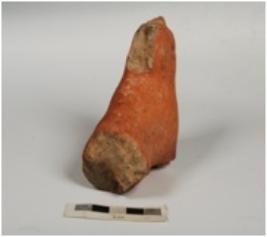 | Description / विवरण | Terracotta animal figurine, with missing legs, hind portion and mouth, neck portion with chipped back and front part, ill fired, red in colour. |