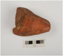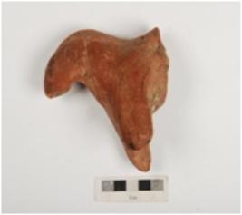 | Description / विवरण | Fragment of a unidentified handmade terracotta animal figurinewith long neck, broken snout hind portion and lower portion of a fore legs, prominent mane, incised and pinhole decoration on neck, mica prticles are visible on surface, surface treated with dull red wash. |