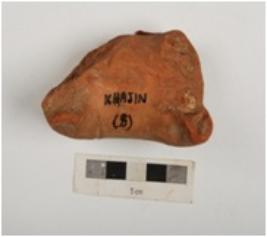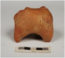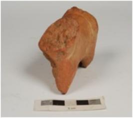 | Description / विवरण | Fragment of headless handmade terracotta animal figurine with broken hind and fore left leg, body decorated with incised decoration, surface treated with dull red slip, well baked. |