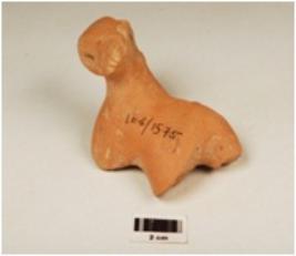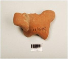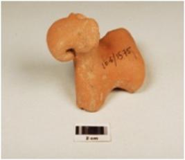 | Description / विवरण | A damaged figurine with out feet it is properly a dog with a strap round the neck, made of terracotta hand made figure surface treated with red slip, well baked. |