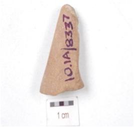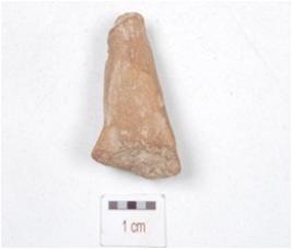 | Description / विवरण | Fragment of a handmade terracotta leg of an animal, made with fine and well baked clay, surface treated in red slip. |