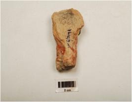 | Description / विवरण | Fragment of handmade terracotta human hand depicting wearing three bands of armlet of applique design, thick at one end, well baked, medium fabric with traces of red slip. |