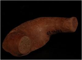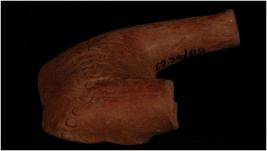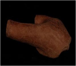 | Description / विवरण | Fragment of terracotta side portion of elephant figurine decoration consist of lines of pinched circles and impressed chakra wheel |