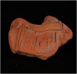 | Description / विवरण | Terracotta head of horse, mane is suggested by appliqued grooved linear design on both sides of neck, thick bridle, snout is visible and red in colour. |