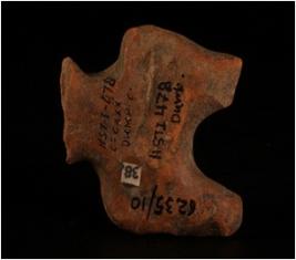 | Description / विवरण | It is a terracotta hip of a human figurine. Right leg is broken. It is decorated with incised lines and pin hole marks. |