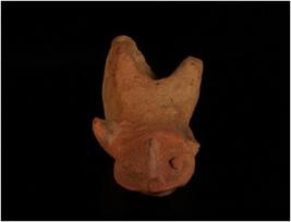 | Description / विवरण | It is a terracotta figurine of seated human being. It has pinched nose. Eyes have been made applique work and left eye is lost. Right hand is broken. Nave has been made by pin hole mark. |