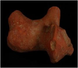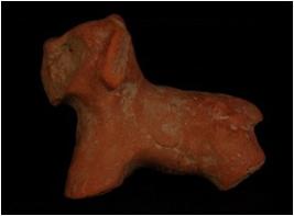 | Description / विवरण | Terracotta ram figurine with ovel design on head, eyes, nose, mouth are broken. Leg are broken. Pinched tail. |