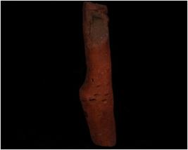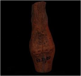 | Description / विवरण | Terracotta torso of a female figurine with incised design. Feet missing incised line design on leg. |