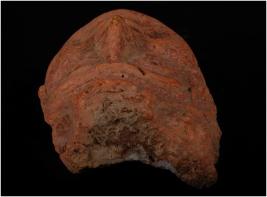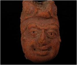 | Description / विवरण | Fragment of terracotta crude male head, smilling face, moulded angular eyes, prominent nose and thick lips. |