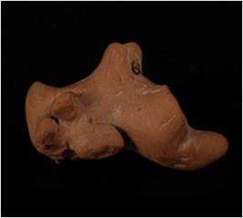 | Description / विवरण | Terracotta fragment of a humped bull, prominent hump, one fore and hind legs are intact, broken horns, conical snout, pointed legs and traces of buff wash found on surface. |