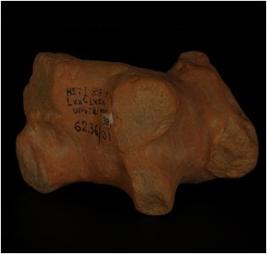 | Description / विवरण | A terracotta fragment of an elephant figurine, with embossed leaf design on body. Ears, trunk, legs and tail are borken, incised eyes and surface treated with wash in dull red colour. |