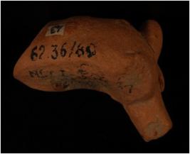 | Description / विवरण | A terracotta fragment of an animal figurine, having an twisted applique tail, one hind leg is intact and surface treated with slip in red colour. |
