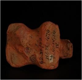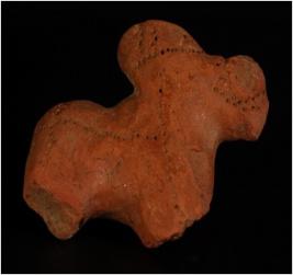 | Description / विवरण | A terracotta fragment of a humped bull, prominent hump, body is covered with intersecting line of pinholes design, broken hind and fore legs, other details are improminent and surface treated with slip in red colour. |