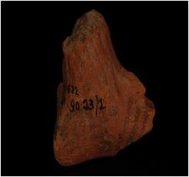 | Description / विवरण | A fragment of terracotta humped bull figurine, head, legs, Hind portin is broken, body is decorated with block lines. Red wash treatment was given. |