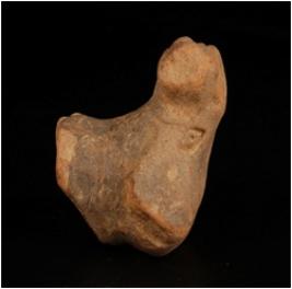 | Description / विवरण | Handmade terracotta fragment of animal head, made from levigated clay, hind portion is missing, incised eyes, eyeballs are suggested by pin hole, wash treatment is given in buff colour. |
