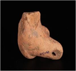 | Description / विवरण | Handmade terracotta figurine, made by well lavigated clay, front portion is missing, hind legs are perforated, tail is intact, wash treatment was given in red colour. |