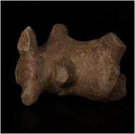 | Description / विवरण | Handmade terracotta fragment of a humped bull, made with well lavigated clay, decorated with incised beaded and stamped flower design on head, gray in colour, prominent hump, legs and horn are partly broken. |