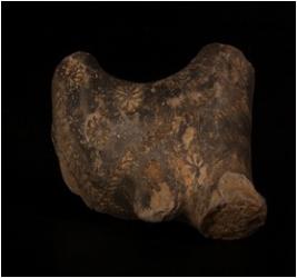 | Description / विवरण | Handmade terracotta fragment of a humped bull, made with well levigated clay, decorated with floral and stamped circle design, prominent hump, legs, head and tail are missing, grey in colour. |