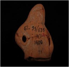 | Description / विवरण | Handmade terracotta fragment of human bust, made with well levigated clay, face is unidentified, right arm is resting o waist, covered head. |