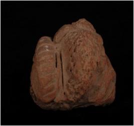 | Description / विवरण | Handmade terracotta fragment of human head of female figurine with curt hair, made from well levigated clay, applique decoration on the head, bunch is decorated with incised lines, pin hole eye, incised eye brow, wash treatment is given in buff colour. |