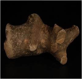 | Description / विवरण | Handmade terracotta fragment of humped bull, legs and horns are missing, diamond shaped eyes, pin hole snout and ears, incised lines under neck, wash treatment is given in grey colour. |