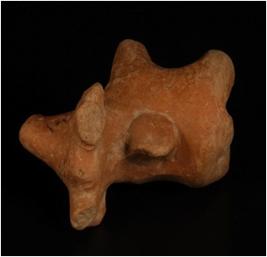 | Description / विवरण | Terracotta fragment of humped bull prominent hump, Daimond shaped incised eye, Short conical legs, tail is missing. Punch mark on the head, Incised lines on the neck, Horns are parlty broken, Pin hole nose and Wash treatment is given in red colour. |