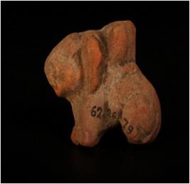 | Description / विवरण | Fragment of terracotta tusked elephant, Rider is seated. Legs are partly broken and prominent ears. |