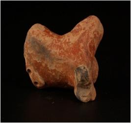 | Description / विवरण | Terracotta animal figurine. Legs are partly broken, short thick neck, round pallet pierced eyes, facial features are not clear and pin holes on hind portion. |
