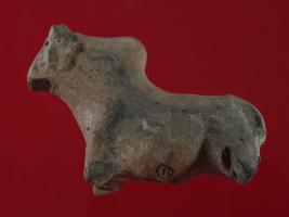 | Description / विवरण | Trench VIII ToX , Stratum Layer 11 Animal figurine made of baked clay. Its all the four legs are lost. Damaged on the head and the hind portion. Holes in its neck and irregular marks on its surface. Surface is smooth and appearance is of brown colour. |
