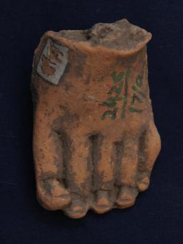 | Description / विवरण | It s a foot made by high quality clay. Colour is red and well fired. Upper portion is broken and deep lines on it. Surface is rough and deposition of dust. |