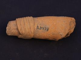| Description / विवरण | It s a fragment of human hand made by terracotta. It is well fired and colour is ochred. Well decorated and broken from both sides. Rubbing on the surface and deep lines on it. |
