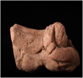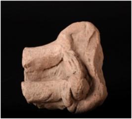 | Description / विवरण | Fragment of handmade seated human figurine is holding bowl, incised work on fingers, seated on pedestal, well levigated ,well fired and red in colour. |