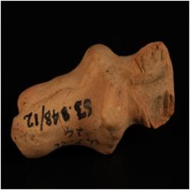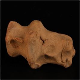 | Description / विवरण | Handmade terracotta fragment of humped bull with prominent hump, pinched dew lap, fore head is broken. Surface is treated with wash in buff colour, made by well levigated clay |