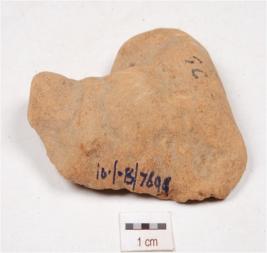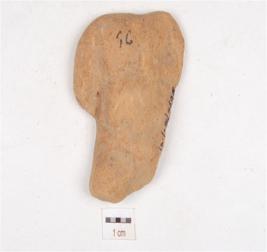 | Description / विवरण | A fragment of moulded terracotta plaque with human leg, well baked, defaced, surface treated with red slip. |