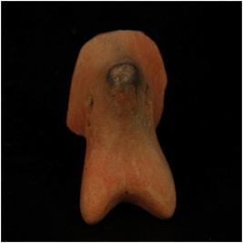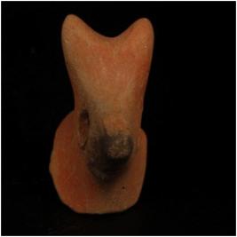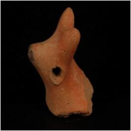 | Description / विवरण | Handmade terracotta fragment of animal head. Perforation on neck. Pinched horn. Hollow from inside, horns are intact. Wash treatment is given in red colour. |