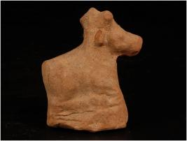 | Description / विवरण | Handmade terracotta figure of a seated bull. Projected snout and ears are broken. |