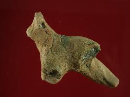 | Description / विवरण | Trench B-4,LxB-D VIII3 .80 mtrs x 2 mtrs - 2.34 mtrs Below Peg V3,Stratum Layer 1 It is a broken Animal figurine made of baked clay. Its three legs are lost and one leg is damaged. Head is defaced. Chipped can also be seen on its head. Surface is rough. Irregular marks are present all over the surface. Fire marks on the surface of figurine. Appearence is of brown colour. |