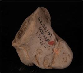 | Description / विवरण | Handmade terracotta head portion of an Elephant figurine decorated with a stamp design. Remaining body portion missing and trunk decorated with punch mark circle. |