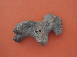 | Description / विवरण | Trench BX-1, LxB-D V.0.80 mts x 2.10 mts - 2.84 mts at V, Stratum-9. It is a horse figurine, made of baked clay. It is a toy might be used for playing and also might be as show-piece. Surface is uneven and rough. The artistic value of object is fine, the colour of object is brick brown. |